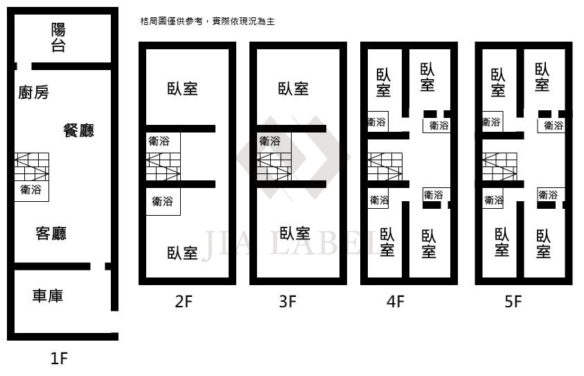 1F~3F為自用,兩間房間雅房,一樓為廁所